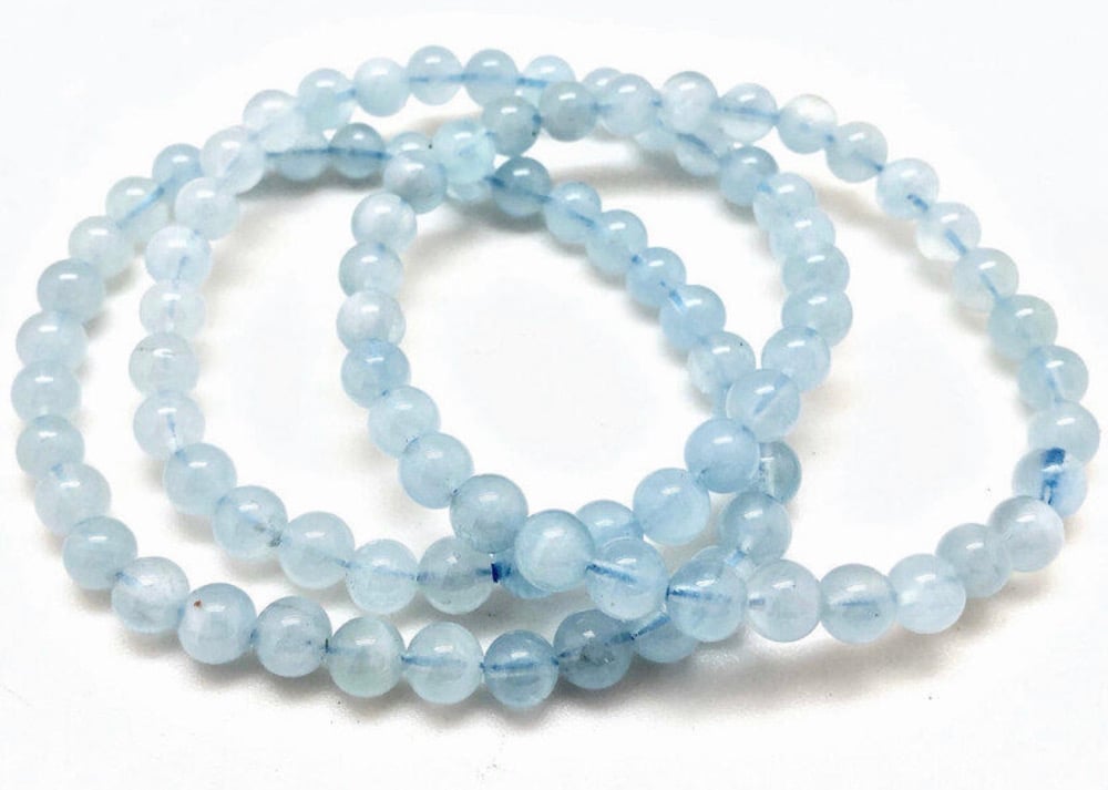 An aquamarine crystal bracelet acts as a "stone of courage and serenity," commonly worn to calm emotions, reduce stress, and clear the mind. Linked to the throat chakra, it promotes clear communication, self-expression, and truthful speech and more.