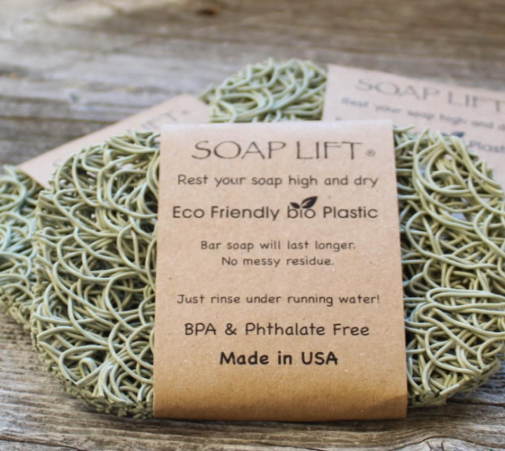A soap lift's main benefit is extending bar soap's life by keeping it dry, preventing it from becoming mushy and wasteful, by allowing water to drain and air to circulate underneath. Made from eco-friendly bioplastic, these lifts create a textured surface for soap to rest on, keeping it clean, reducing soap scum, and even keeping other items like razors or bottles dry.